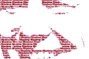 Het portret van Willem- Alexander wordt gevormd door een eindeloze herhaling van het woord Maxima.